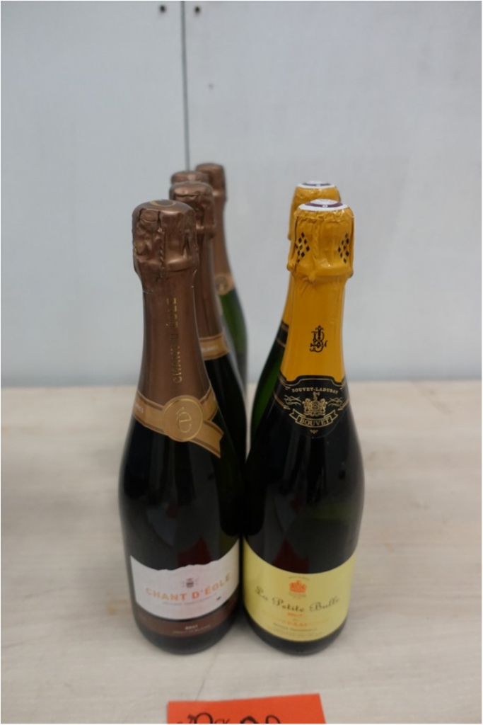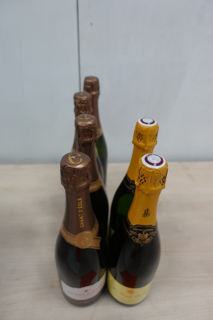 Lot de 6bouteilles de champagne 4 chant d'eole 2 la petite bulle