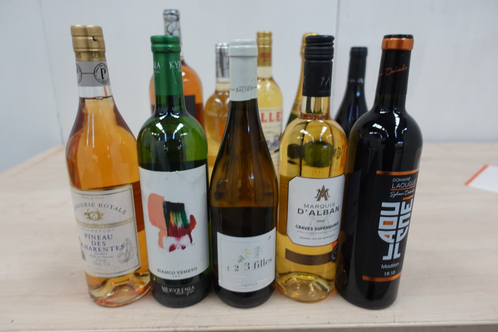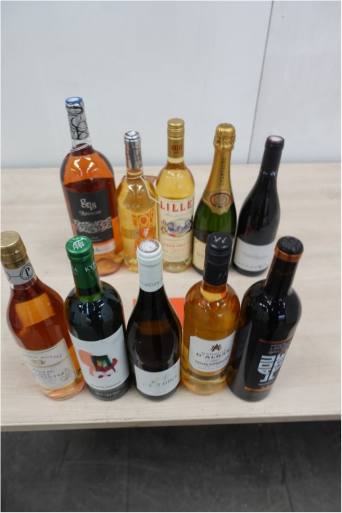 Lot de 10 bouteilles de vin et divers